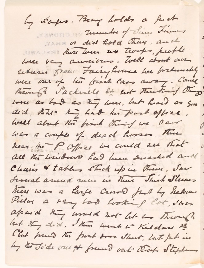 ... There appeared to be a battle going on about Ballsbridge... from page 3 of Alfred West's letter. NLI ref.: Ms. 49,365