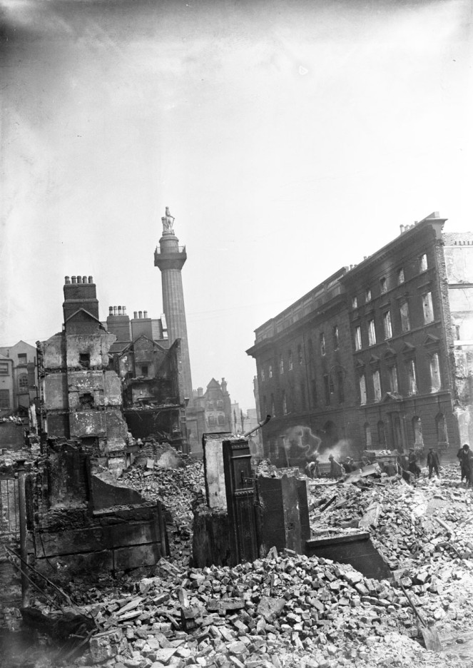 View from the back of the G.P.O. on Henry Street towards Nelson's Pillar on Sackville Street (now O'Connell Street). NLI ref.: Ke 111