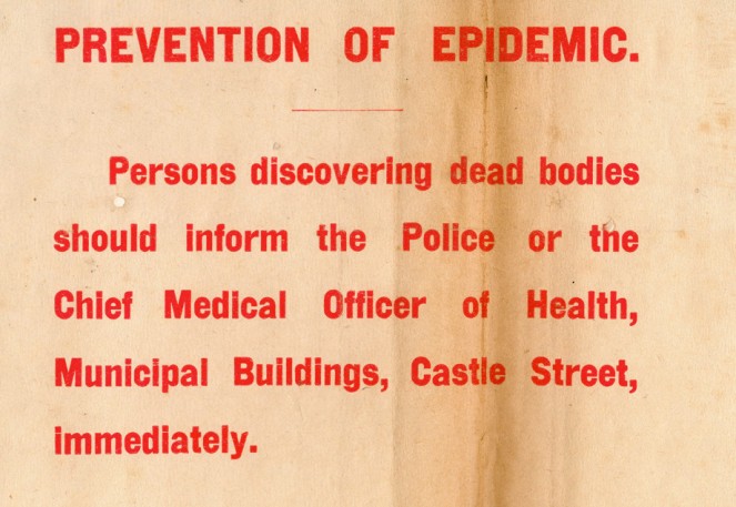 Fearing an outbreak of disease, this handbill was issued by the Administration in Dublin Castle. NLI ref.: POL/1910-20/2