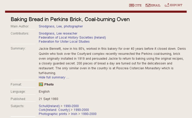 Fruit of the labours of our volunteers - one of the Our Own Place catalogue records. NLI ref.: OOP_17/34